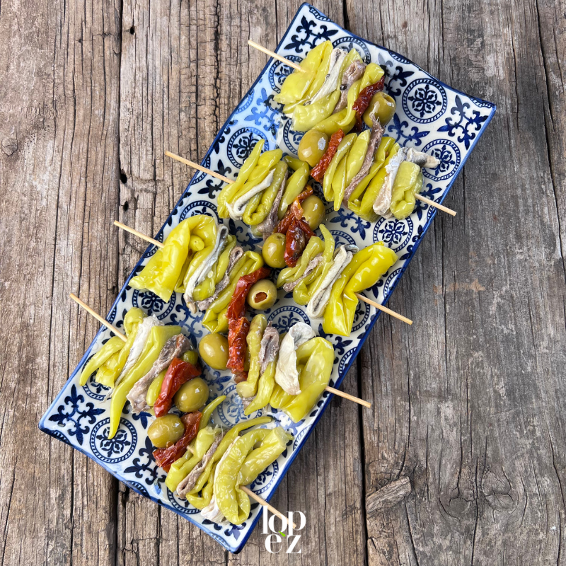 Gildas Premium con Anchoa, boquerón, aceituna, piparra y tomate seco.